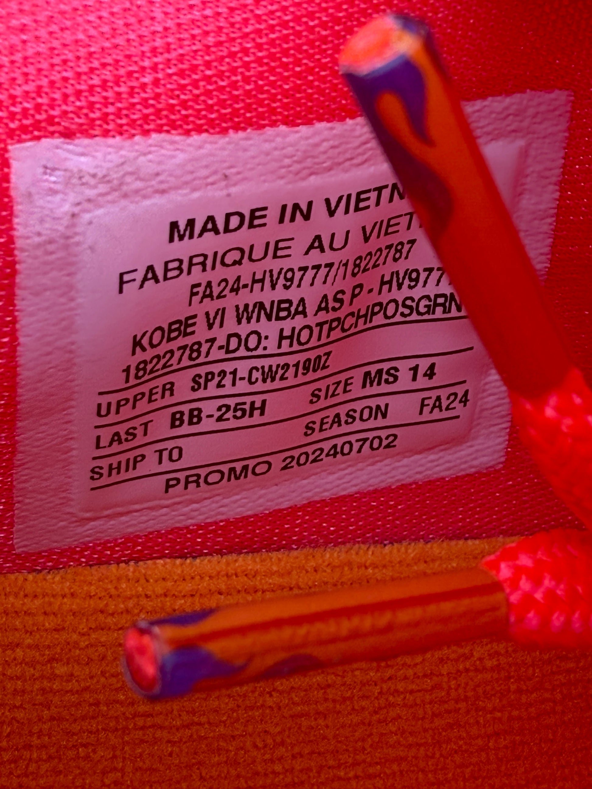 Kobe 6 WNBA PE (size 14)